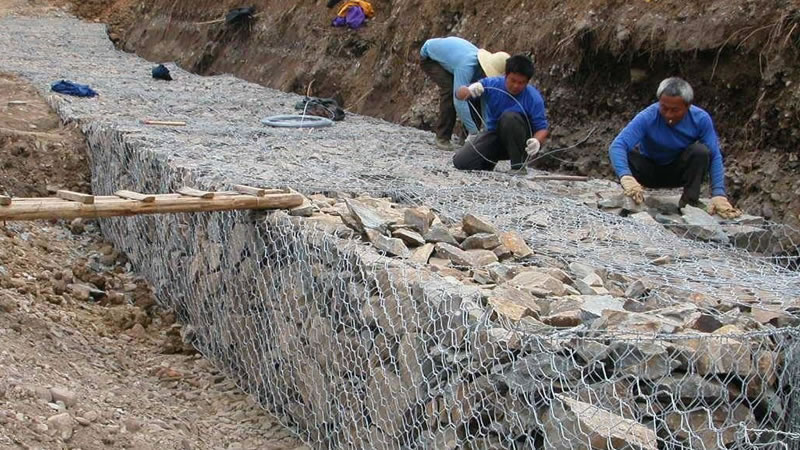河道加筋格賓石籠網生產工藝: (1)河道加筋格賓石籠網雙絞合織造工藝,指鋼絲在織造過程中兩兩替換進行單向擰編的*種工藝,根據兩根鋼絲絞合的次數不同又分為三鉸和五絞。 (2)河道加筋格賓石籠網網片折疊聯合組合工藝,由格網組裝成的箱體內填充符合要求的塊體材料而構成的柔性結構,是河道處理,生態維護,水資源運用,堤防制造,防洪防澇和路橋路基工程的重要組成部分,是構筑生態格網體系的主要元素,在我國的黃河流域生態維護,黑龍江省三江處理工程,南水北調工程,葛洲壩等工程中發揮了重要的效果。 (3)河道加筋格賓石籠網隔板加固組合工藝,因為格賓網箱選用的原材料鋼絲較小,有時選用的織造工藝成型,所以整體柔韌性較強,短少恰當的強度,所以,為了增加網箱結構的健壯性,往往在網箱內部設置隔板,隔板間隔通常情況下是*米*個。根據需求進行隔板設置,有時隔板與面板綁扎,有時隔板與底部、面板呈*體。