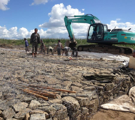 格賓石籠在施工時只需要把網箱或網墊立架——鋪平折痕——組裝綁扎——裝石——封箱即可。設計原理: